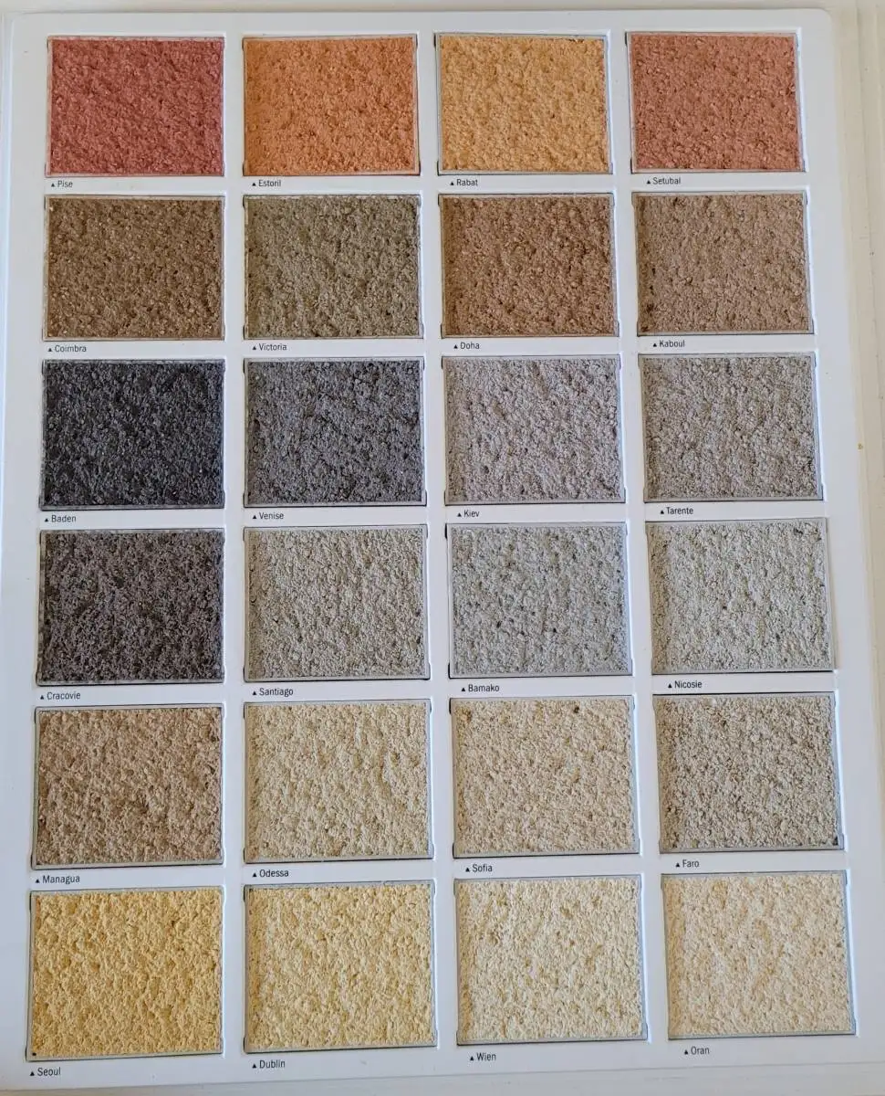 Il peut être appliqués manuellement ou par projection mécanique en finition "projetée écrasée, grattée, ou talochée", disponible en 48 coloris.